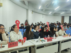 本次决赛的题型设置兼具知识性与挑战性,涵盖必答题和抢答题两大模块。必答题环节,各代表队沉着应对、精准作答,充分展现前期理论学习的扎实功底;抢答题环节,选手们反应迅速、果断抢答,现场比分交替上升,掌声与欢呼声此起彼伏,既考验知识储备,更比拼临场应变能力,氛围紧张而热烈。主题演讲中,六支队伍都以饱满的形象、丰富的理论知识展现了我院学子对于党的理论知识深刻的理解与坚定的认同。