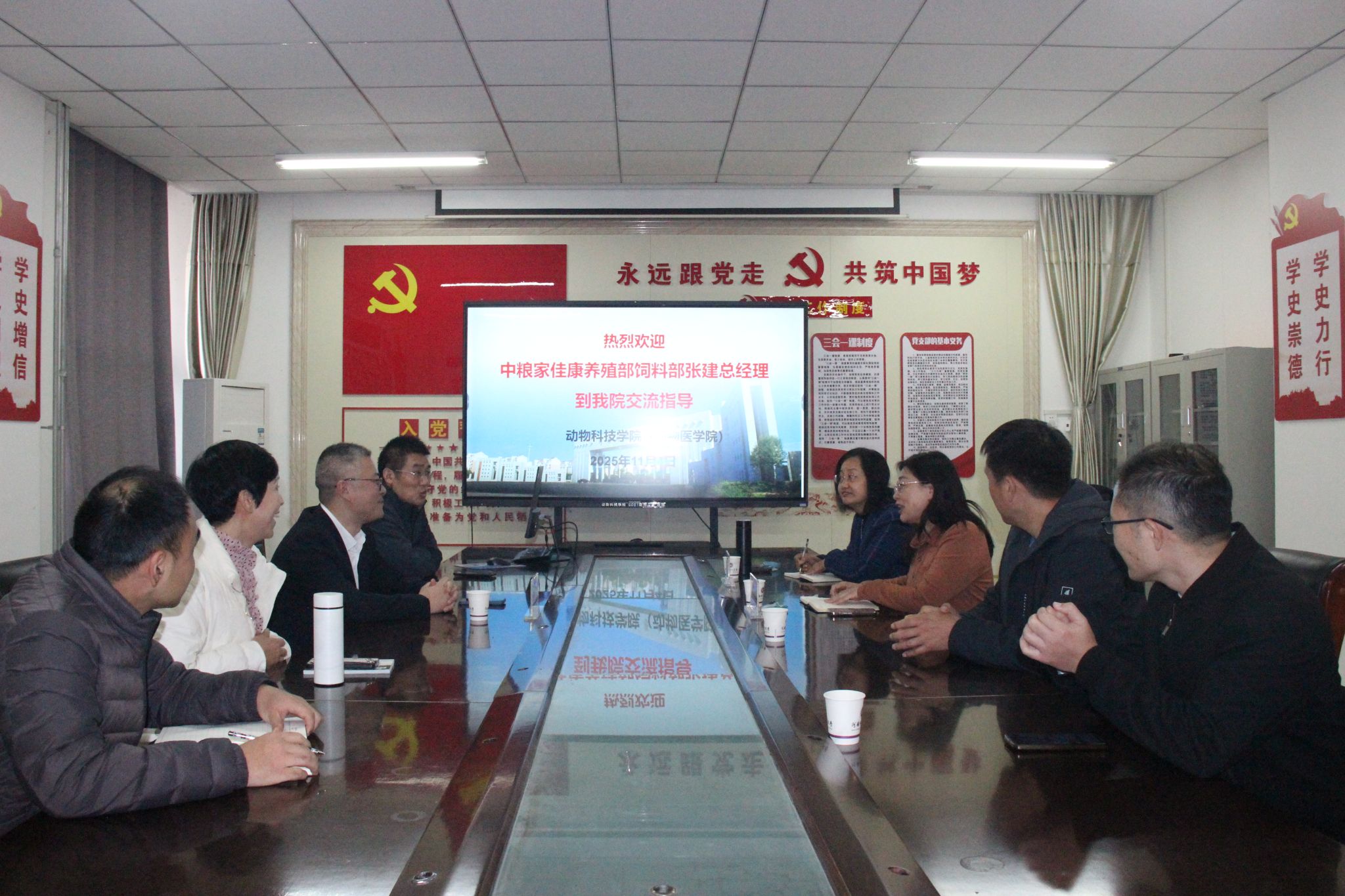 授课结束后,张建总经理到学院进行了座谈交流,院长刘玉梅,副院长文凤云及部分中青年骨干教师共同参加。刘玉梅院长对张建总经理的到来表示热烈欢迎,同时对张建总经理长期以来对学院人才培养工作中给予的支持表示衷心感谢,希望未来能够继续以多维度合作推动畜牧兽医人才培养再上新高度。张建总经理表示期待双方通过优势互补与资源共享,在关键技术攻关和高素质人才培养上加强合作,共同开启校企协同育人新篇章。