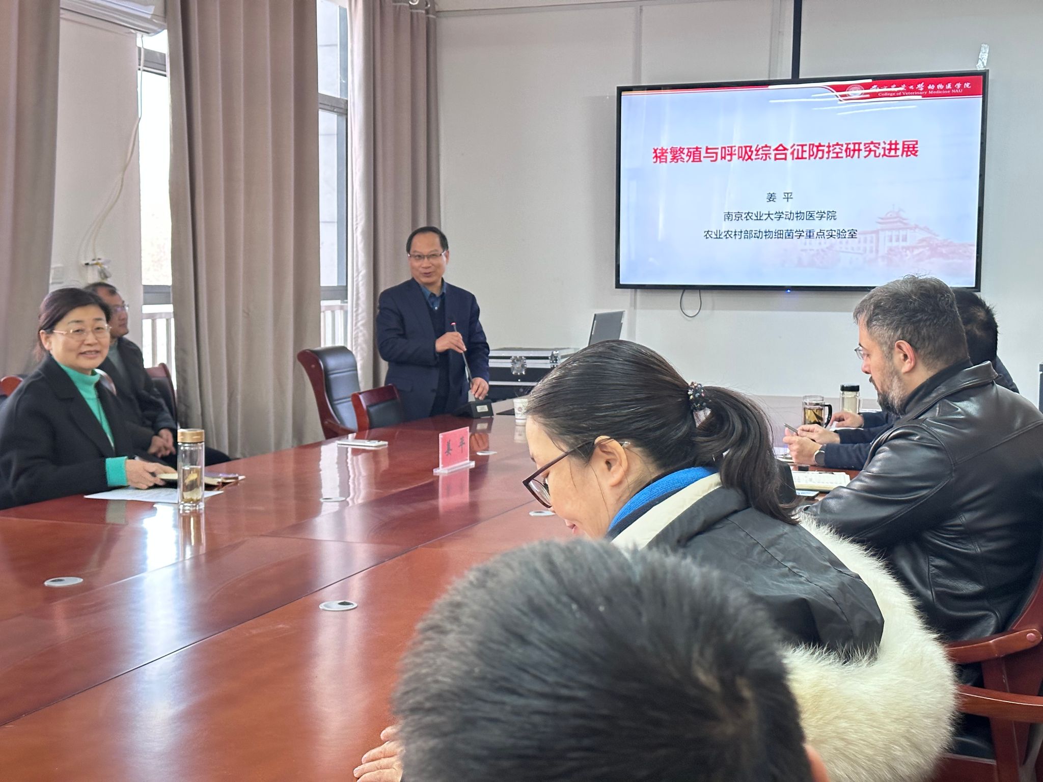 12月5日,南京农业大学姜平教授应邀来我校作题为《猪繁殖与呼吸综合征防控研究进展》的专题报告。
